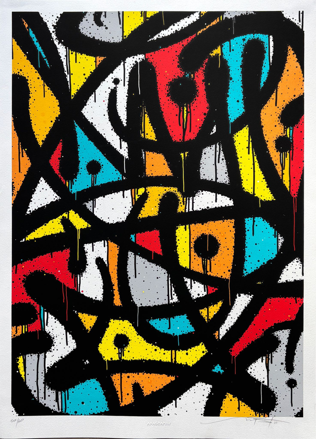 Sérigraphie 7 couleurs sur papier BFK Rives (270 g) imprimée à la main de manière traditionnelle dans un atelier de sérigraphie français, près de Montpellier en 2022.